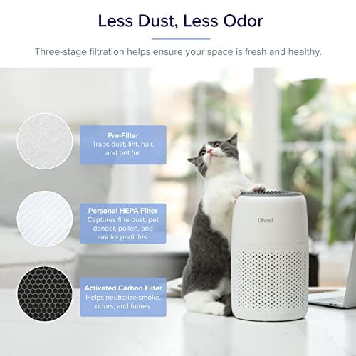 LEVOIT Air Purifiers for Bedroom Home, 3-in-1 Filter Cleaner with Fragrance Sponge for Better Sleep, Filters Smoke, Allergies, Pet Dander, Odor, Dust, Office, Desktop, Portable, Core Mini, White