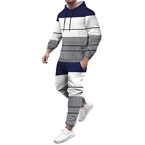 Sets Men's Suits, Men's Autumn and Winter Fashion Sports Stitching Collision Color With Pocket Fleecy Hooded Hooded Dress 70s Outfits For Men